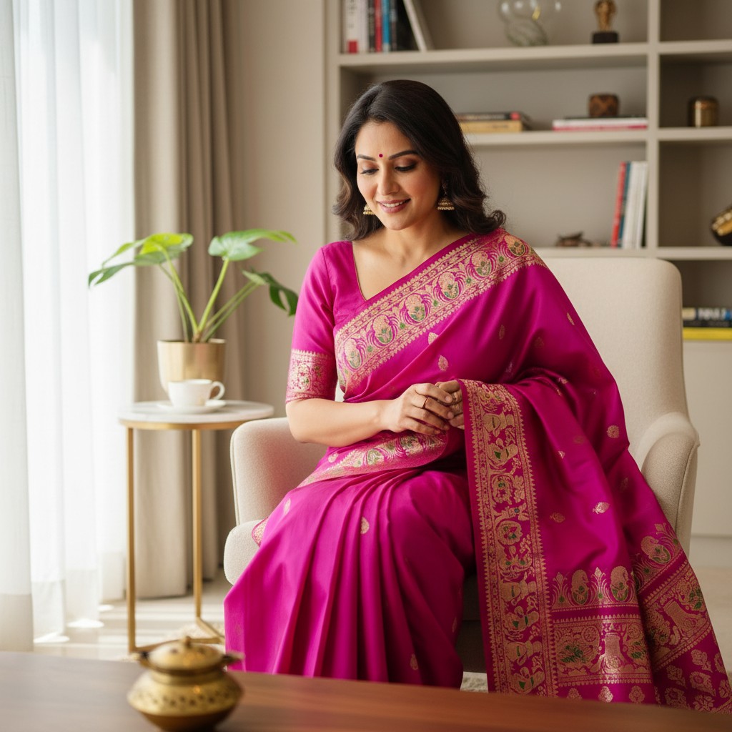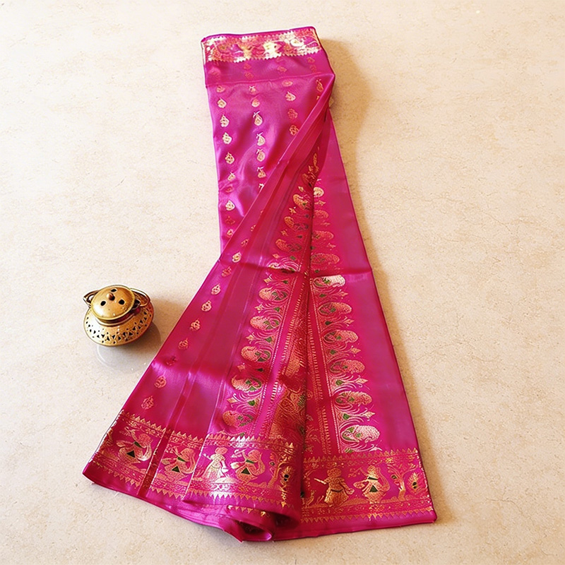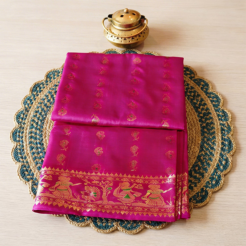 • Work: 1000 buti (all-over small motifs) with zari weaving