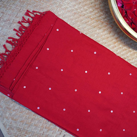 Be the first to review “Kolkata Cotton Sea Shells Institched Saree”